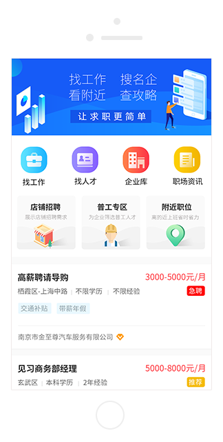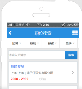 隨時隨地搜索工作,輕輕松松應(yīng)聘職位,工作前途一手掌握。